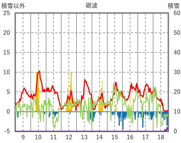 | 日 | 時 | 気温 | 降水 | 風向/風速 | 日照 | 積雪 | 降雪 |