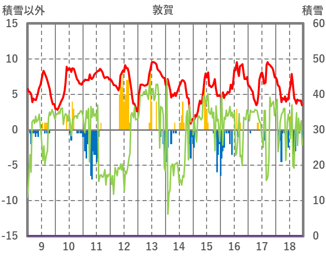 | 日 | 時 | 気温 | 降水 | 風向/風速 | 日照 | 積雪 | 降雪 |