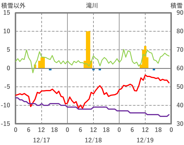 | 日 | 時 | 気温 | 降水 | 風向/風速 | 日照 | 積雪 | 降雪 |