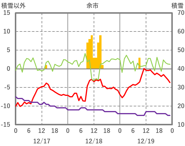 | 日 | 時 | 気温 | 降水 | 風向/風速 | 日照 | 積雪 | 降雪 |