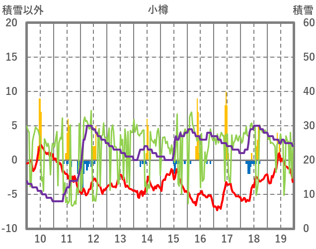 | 日 | 時 | 気温 | 降水 | 風向/風速 | 日照 | 積雪 | 降雪 |