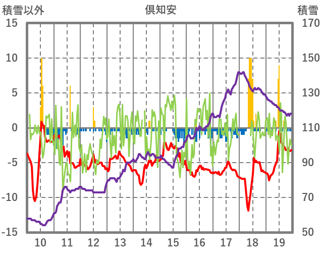 | 日 | 時 | 気温 | 降水 | 風向/風速 | 日照 | 積雪 | 降雪 |