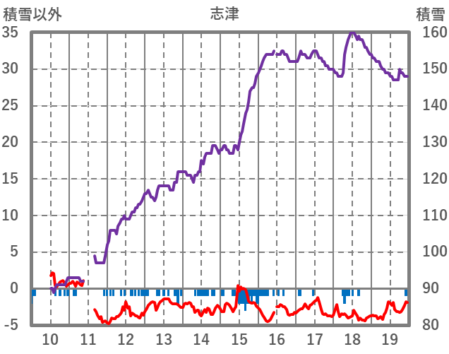 | 日 | 時 | 気温 | 降水 | 風向/風速 | 日照 | 積雪 | 降雪 |