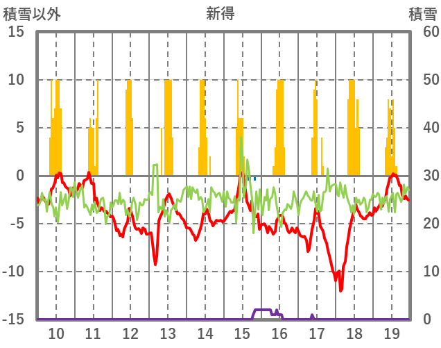 | 日 | 時 | 気温 | 降水 | 風向/風速 | 日照 | 積雪 | 降雪 |