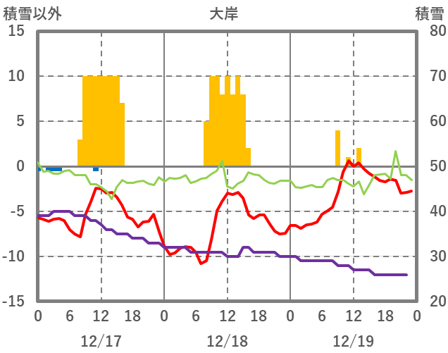 | 日 | 時 | 気温 | 降水 | 風向/風速 | 日照 | 積雪 | 降雪 |
