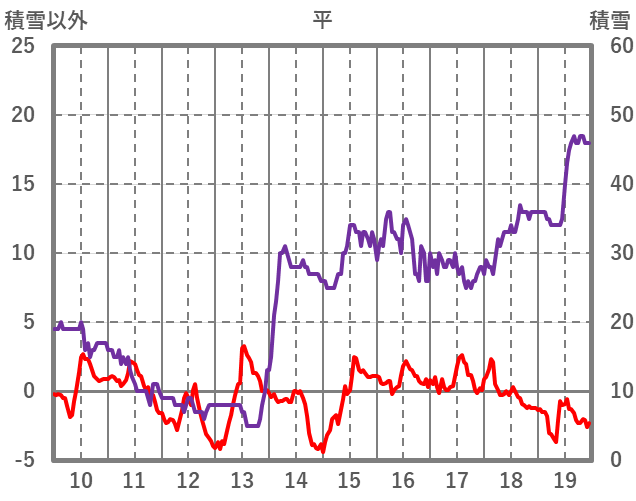 | 日 | 時 | 気温 | 降水 | 風向/風速 | 日照 | 積雪 | 降雪 |
