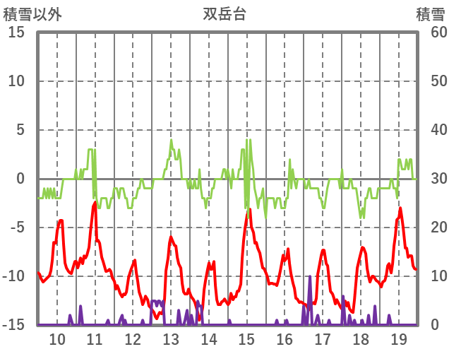 | 日 | 時 | 気温 | 降水 | 風向/風速 | 日照 | 積雪 | 降雪 |