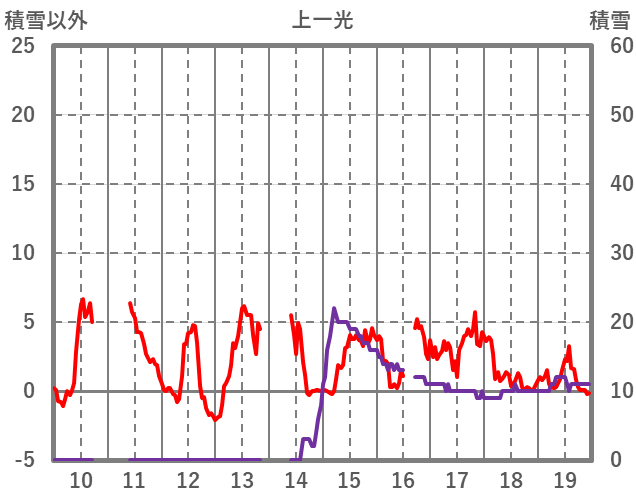 | 日 | 時 | 気温 | 降水 | 風向/風速 | 日照 | 積雪 | 降雪 |