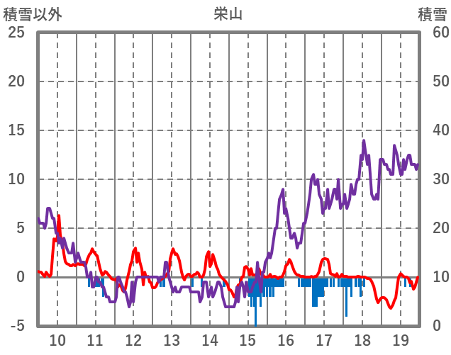 | 日 | 時 | 気温 | 降水 | 風向/風速 | 日照 | 積雪 | 降雪 |