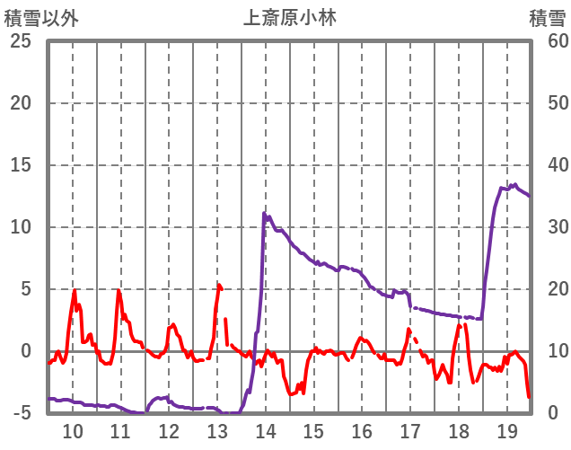 | 日 | 時 | 気温 | 降水 | 風向/風速 | 日照 | 積雪 | 降雪 |