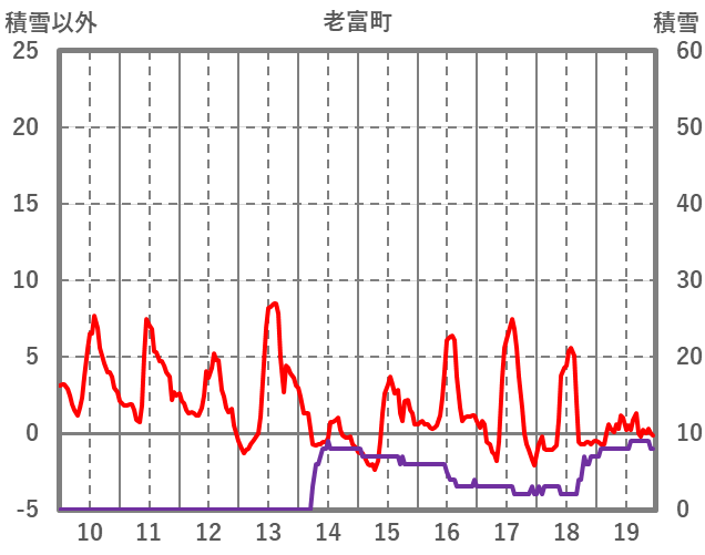 | 日 | 時 | 気温 | 降水 | 風向/風速 | 日照 | 積雪 | 降雪 |