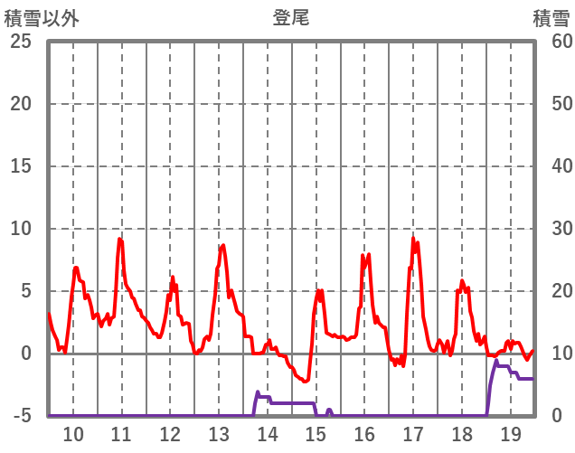 | 日 | 時 | 気温 | 降水 | 風向/風速 | 日照 | 積雪 | 降雪 |