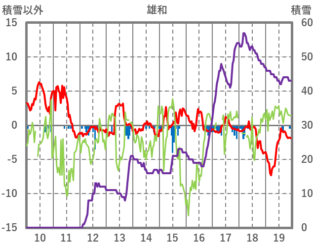 | 日 | 時 | 気温 | 降水 | 風向/風速 | 日照 | 積雪 | 降雪 |