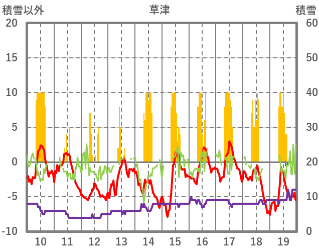 | 日 | 時 | 気温 | 降水 | 風向/風速 | 日照 | 積雪 | 降雪 |