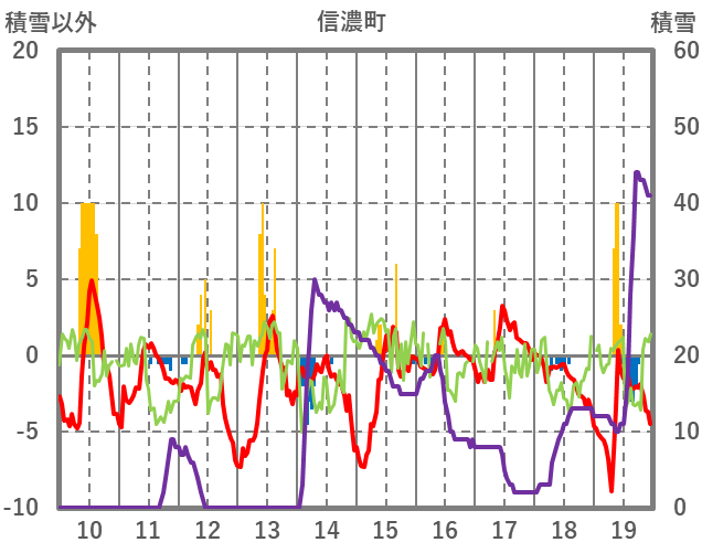 | 日 | 時 | 気温 | 降水 | 風向/風速 | 日照 | 積雪 | 降雪 |