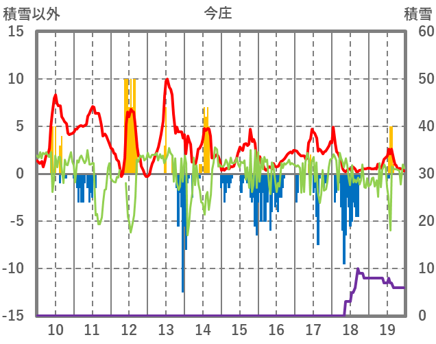 | 日 | 時 | 気温 | 降水 | 風向/風速 | 日照 | 積雪 | 降雪 |