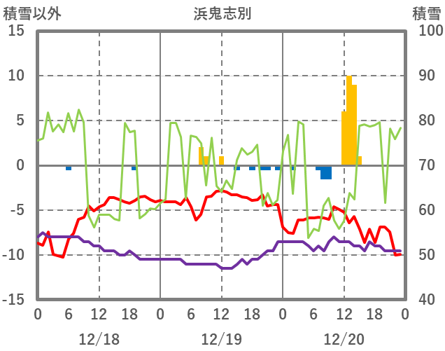| 日 | 時 | 気温 | 降水 | 風向/風速 | 日照 | 積雪 | 降雪 |