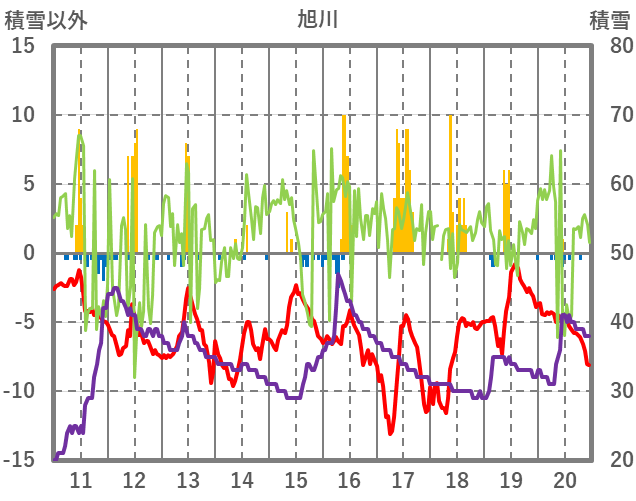 | 日 | 時 | 気温 | 降水 | 風向/風速 | 日照 | 積雪 | 降雪 |