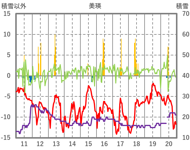 | 日 | 時 | 気温 | 降水 | 風向/風速 | 日照 | 積雪 | 降雪 |