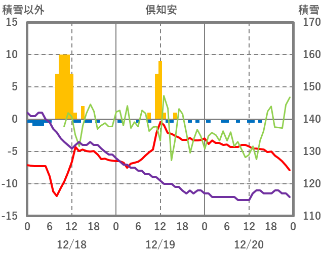 | 日 | 時 | 気温 | 降水 | 風向/風速 | 日照 | 積雪 | 降雪 |
