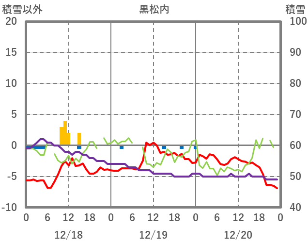 | 日 | 時 | 気温 | 降水 | 風向/風速 | 日照 | 積雪 | 降雪 |