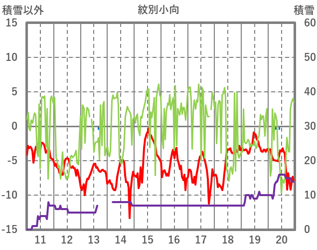 | 日 | 時 | 気温 | 降水 | 風向/風速 | 日照 | 積雪 | 降雪 |