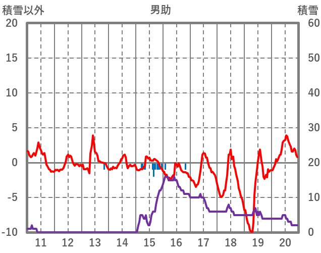 | 日 | 時 | 気温 | 降水 | 風向/風速 | 日照 | 積雪 | 降雪 |