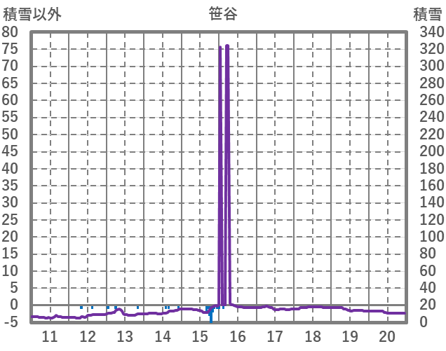 | 日 | 時 | 気温 | 降水 | 風向/風速 | 日照 | 積雪 | 降雪 |