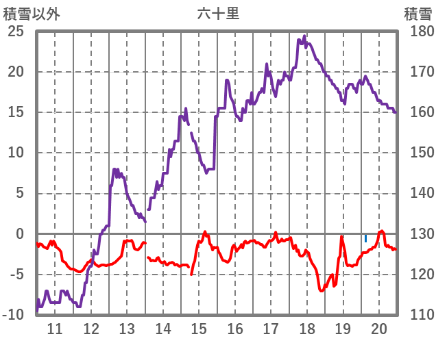 | 日 | 時 | 気温 | 降水 | 風向/風速 | 日照 | 積雪 | 降雪 |