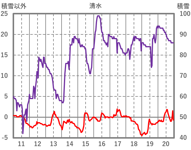 | 日 | 時 | 気温 | 降水 | 風向/風速 | 日照 | 積雪 | 降雪 |