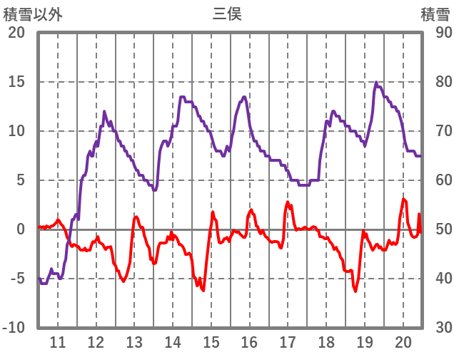 | 日 | 時 | 気温 | 降水 | 風向/風速 | 日照 | 積雪 | 降雪 |