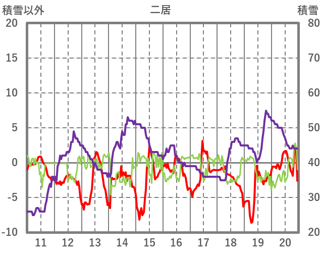 | 日 | 時 | 気温 | 降水 | 風向/風速 | 日照 | 積雪 | 降雪 |