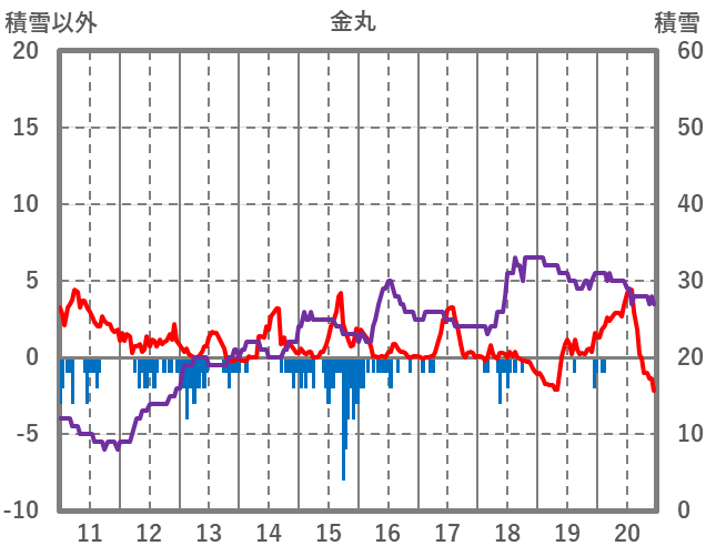 | 日 | 時 | 気温 | 降水 | 風向/風速 | 日照 | 積雪 | 降雪 |