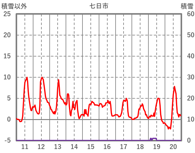 | 日 | 時 | 気温 | 降水 | 風向/風速 | 日照 | 積雪 | 降雪 |