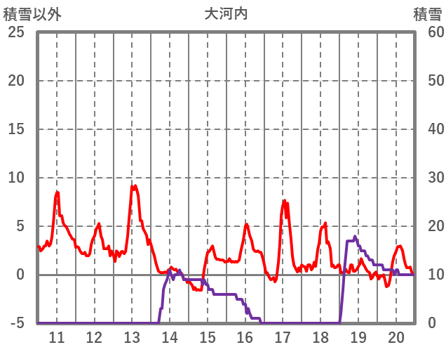 | 日 | 時 | 気温 | 降水 | 風向/風速 | 日照 | 積雪 | 降雪 |