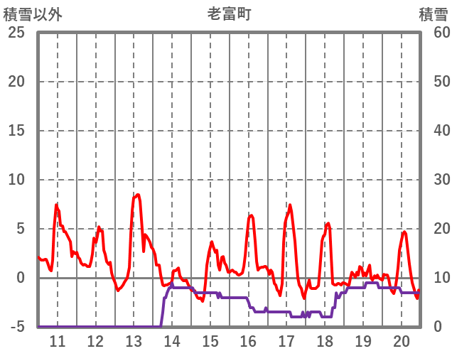 | 日 | 時 | 気温 | 降水 | 風向/風速 | 日照 | 積雪 | 降雪 |