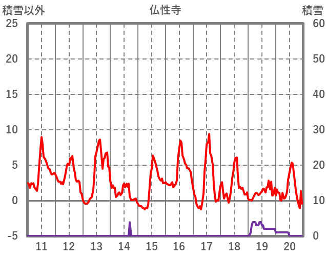| 日 | 時 | 気温 | 降水 | 風向/風速 | 日照 | 積雪 | 降雪 |