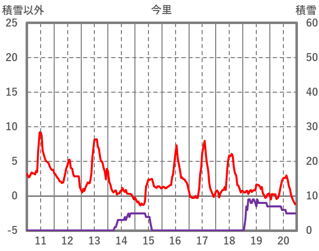 | 日 | 時 | 気温 | 降水 | 風向/風速 | 日照 | 積雪 | 降雪 |
