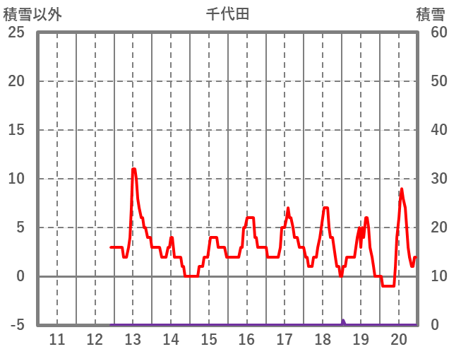 | 日 | 時 | 気温 | 降水 | 風向/風速 | 日照 | 積雪 | 降雪 |