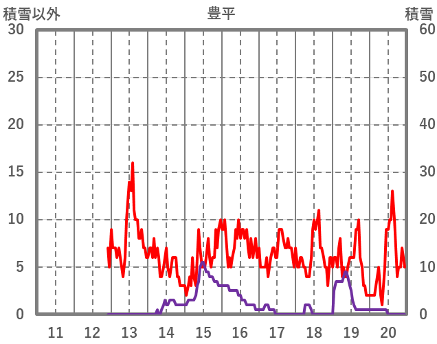 | 日 | 時 | 気温 | 降水 | 風向/風速 | 日照 | 積雪 | 降雪 |