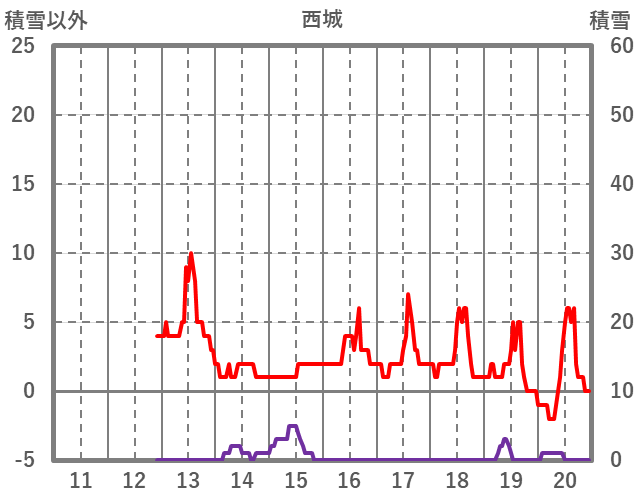 | 日 | 時 | 気温 | 降水 | 風向/風速 | 日照 | 積雪 | 降雪 |