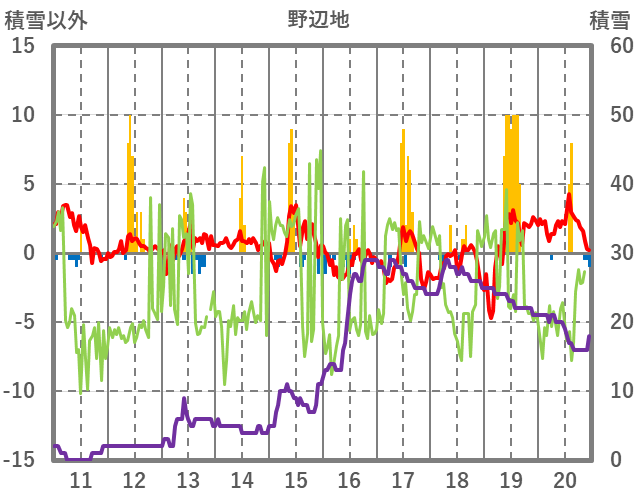 | 日 | 時 | 気温 | 降水 | 風向/風速 | 日照 | 積雪 | 降雪 |