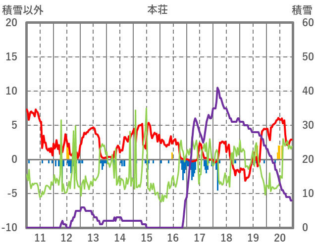 | 日 | 時 | 気温 | 降水 | 風向/風速 | 日照 | 積雪 | 降雪 |