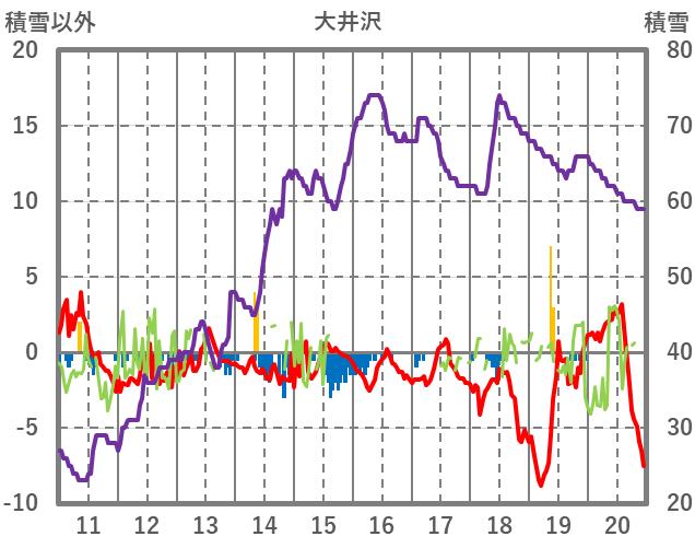 | 日 | 時 | 気温 | 降水 | 風向/風速 | 日照 | 積雪 | 降雪 |