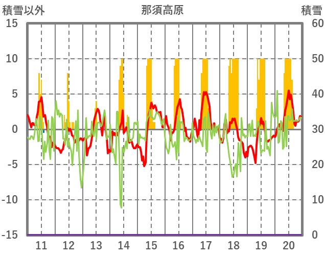 | 日 | 時 | 気温 | 降水 | 風向/風速 | 日照 | 積雪 | 降雪 |