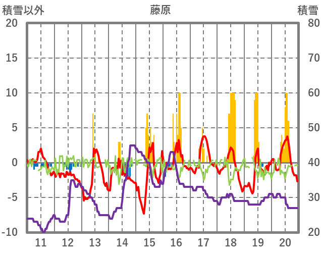 | 日 | 時 | 気温 | 降水 | 風向/風速 | 日照 | 積雪 | 降雪 |