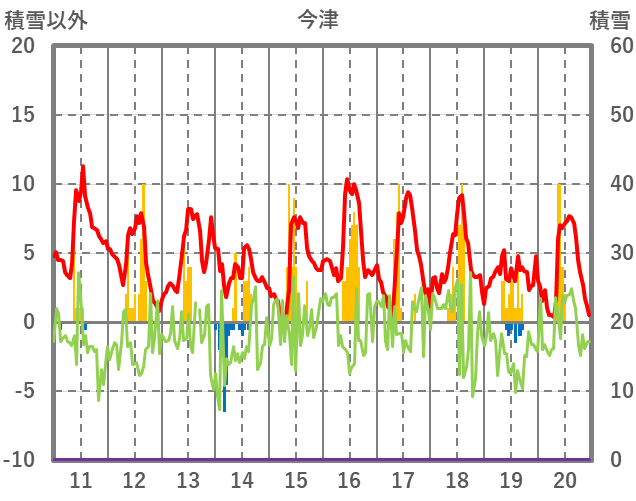 | 日 | 時 | 気温 | 降水 | 風向/風速 | 日照 | 積雪 | 降雪 |
