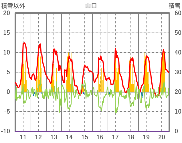 | 日 | 時 | 気温 | 降水 | 風向/風速 | 日照 | 積雪 | 降雪 |
