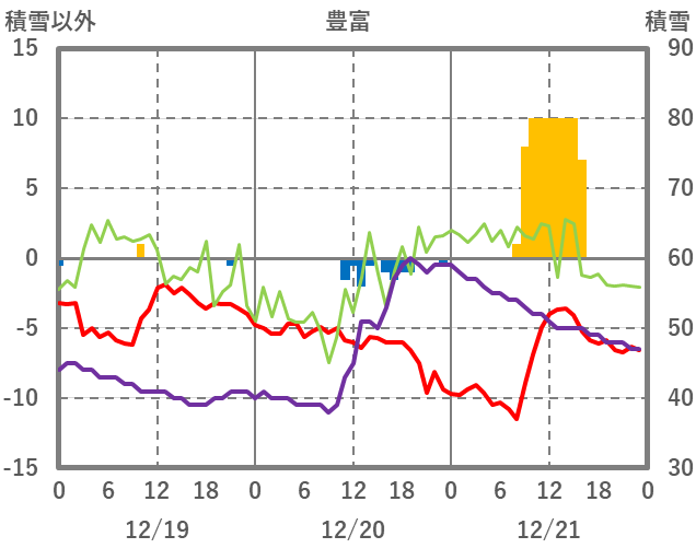 | 日 | 時 | 気温 | 降水 | 風向/風速 | 日照 | 積雪 | 降雪 |