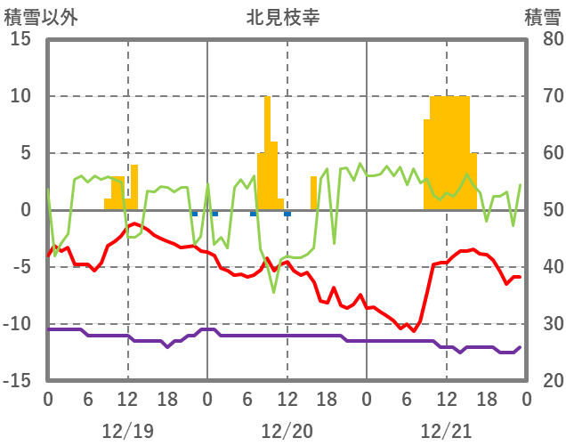 | 日 | 時 | 気温 | 降水 | 風向/風速 | 日照 | 積雪 | 降雪 |